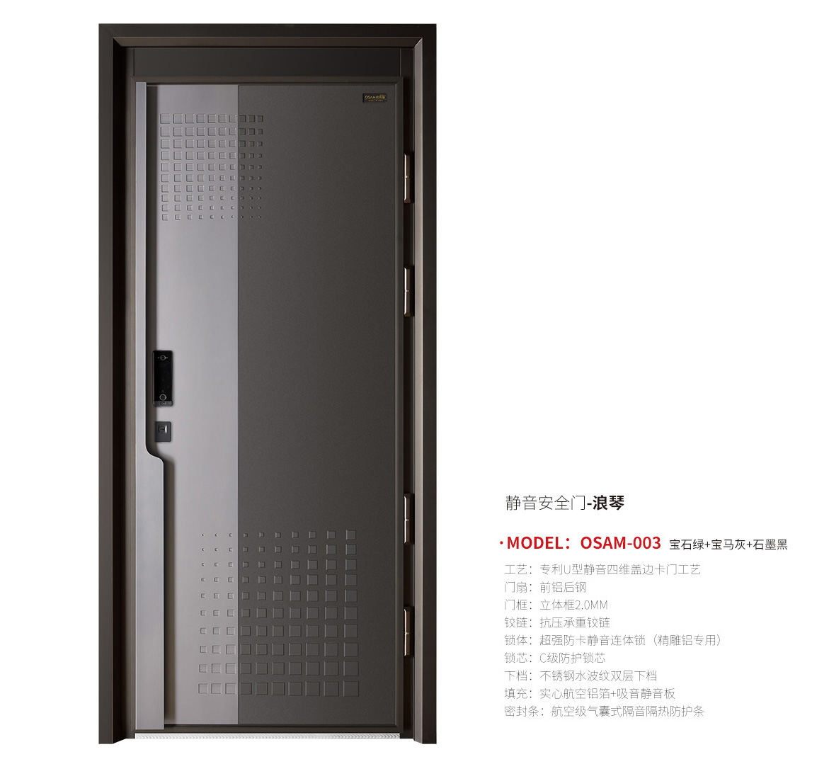 引領(lǐng)技術(shù)-歐奢曼全新打造靜音和安全雙系統(tǒng)安全門,為居者打造全新的生活方式。